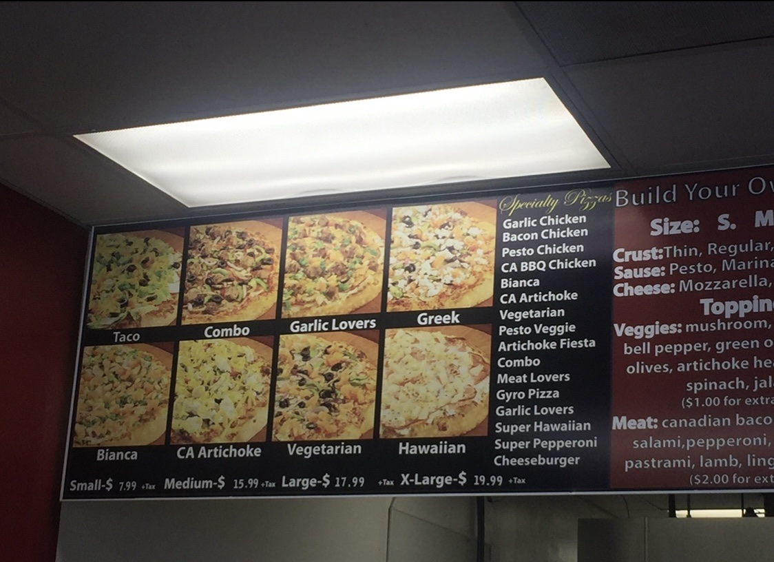 Pizza Toppings: Red Sauce or Creamy Garlic Sauce, Bacon Bits, Mozzarella Cheese, Canadian Bacon, Pineapple, Cheddar Cheese